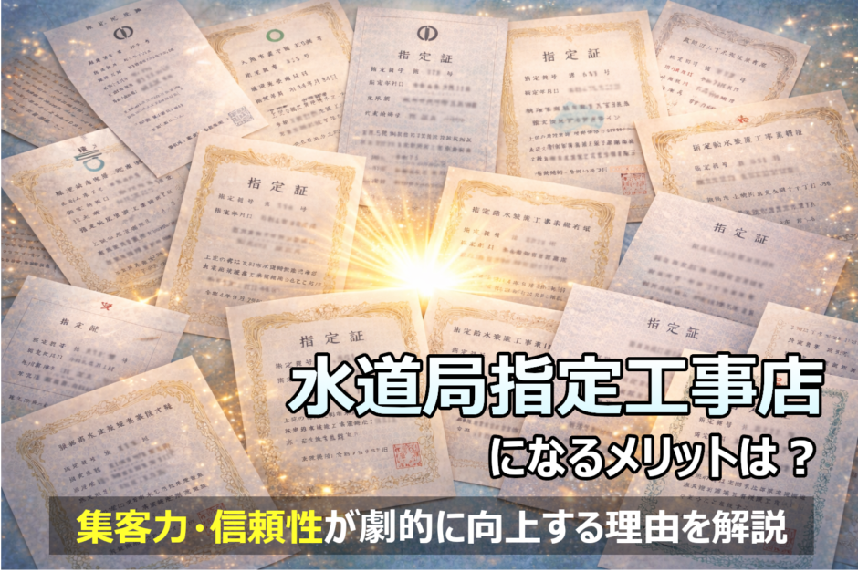 水道局指定工事店の認定は、単なる「看板」ではなく、受注範囲拡大・信頼獲得・Web集客力向上という3つの実益をもたらす強力な経営資産です。