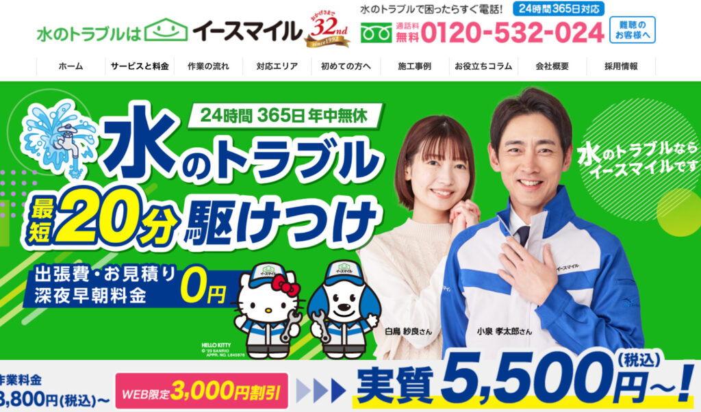 デザイン面では、水道修理業者に求められる「緊急性の高いニーズ」への対応を、「24時間365日対応」というフレーズで明確に打ち出し、利用者に安心感を与えています。