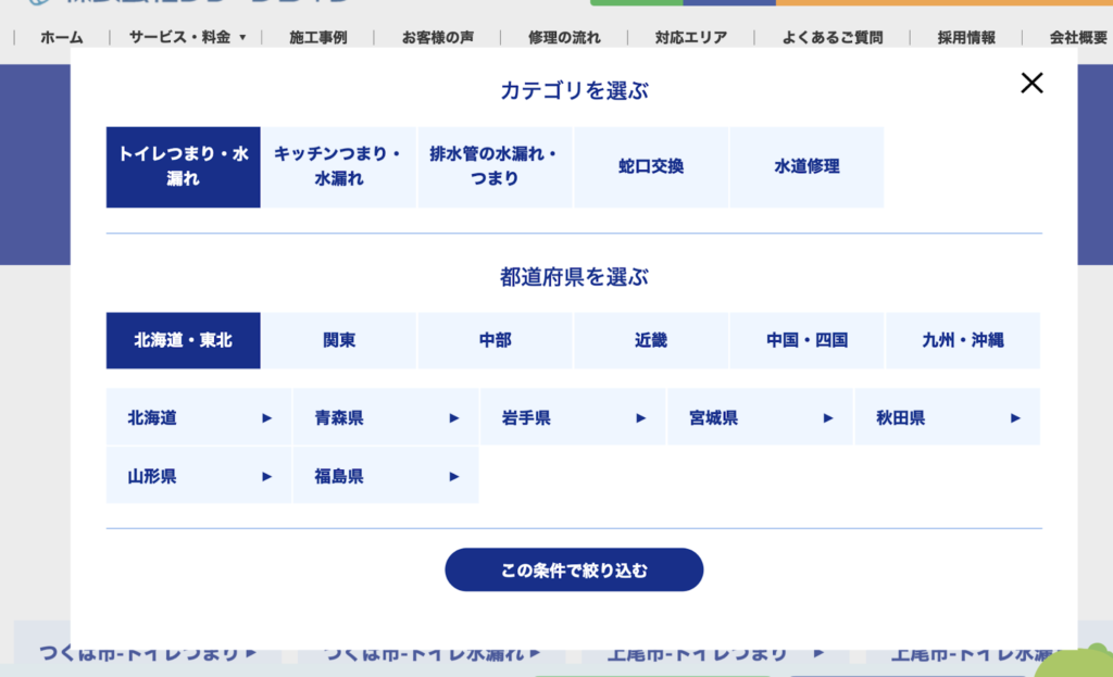 水道修理業は緊急時に直接現場に伺う必要があるため、対応エリアが他の業種に比べて限定的です。そのため、ホームページでは対応エリアを明確に表示し、顧客が依頼可能かどうかをすぐに判断できるようにする必要があります。