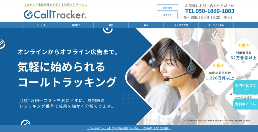 株式会社コムスクエアの「CallTracker」は、国内初・実績No.1のコールトラッキングサービスです。