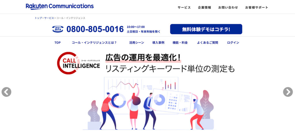 楽天コミュニケーションズ株式会社の「コール・インテリジェンス」は、効果測定用の電話番号を掲載するだけで、『いつ・どこから・どれだけ・どのように電話が着信したか』をリアルタイムに取得し、把握することができるツールです。