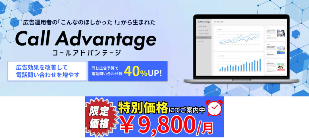 株式会社ニアメロの「コールアドバンテージ」は、独自のAI技術を使って計測を行うコールトラッキングツールです。